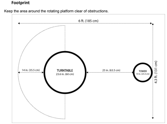 Step 2: Make sure you have enough space between the back wall, side walls, and the turntable. If the turntable looks black in the scanning view, you may need to increase the distance between the turntable and the walls.